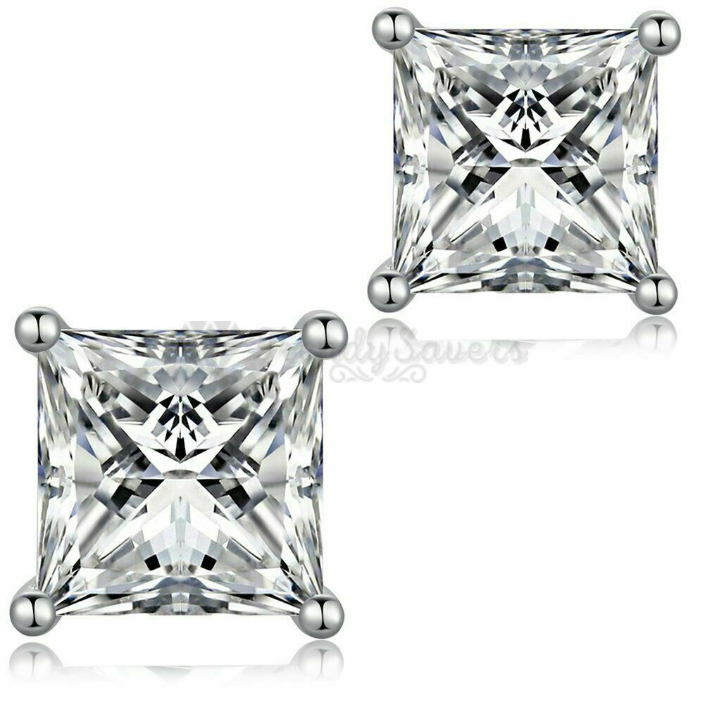 3MM Hypoallergenic Square Cut Cubic Zirconia Silver Small Stud Earrings Jewelry