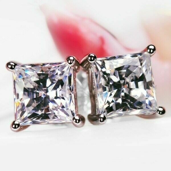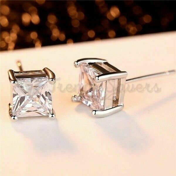 * Made of 18ct White Gold Plated, these square-shaped cubic zirconia stud earrings with butterfly pushback closure are hypoallergenic, durable, lightweight, easy to maintain and use, and guaranteed anti-corrosive.