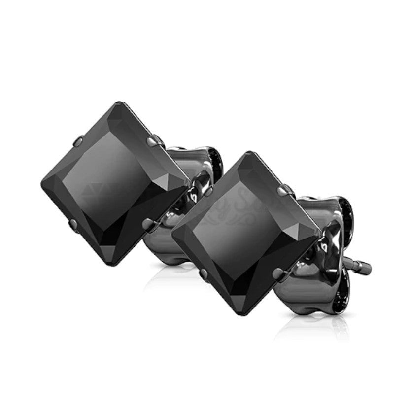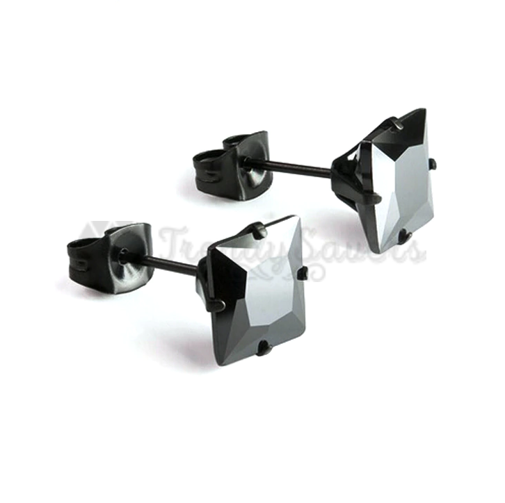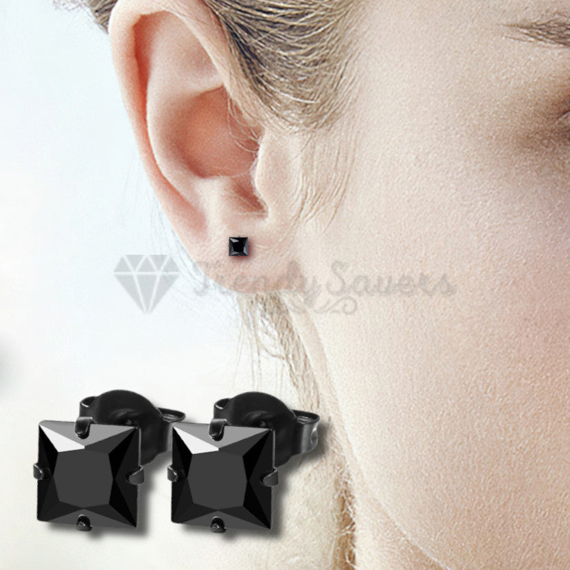 3MM Square Cut Black Cubic Zirconia Ear Piercing Stud Earrings Fashion Jewelry
