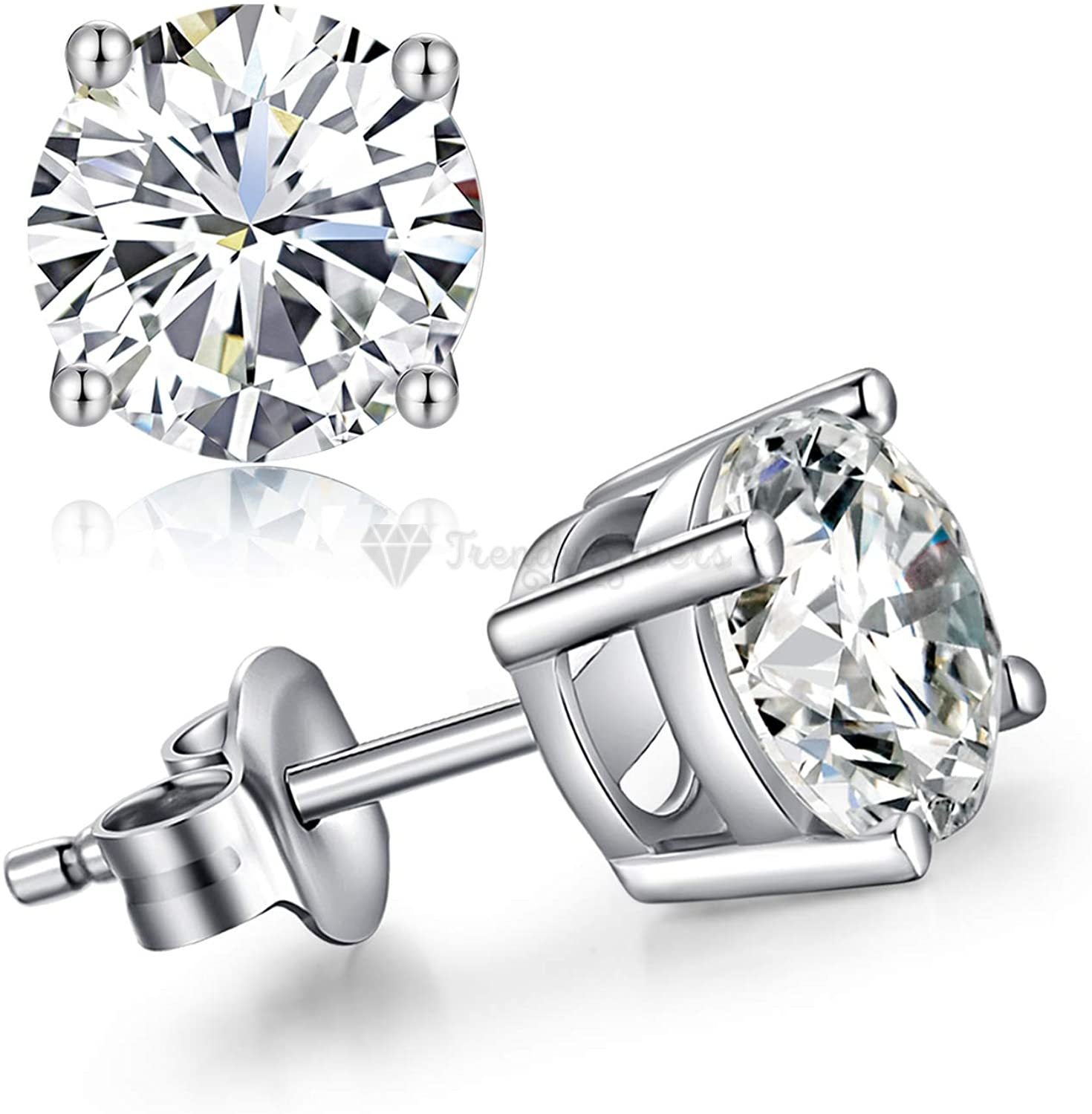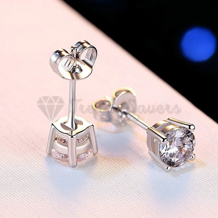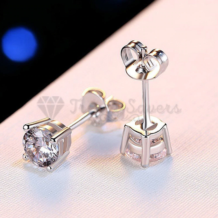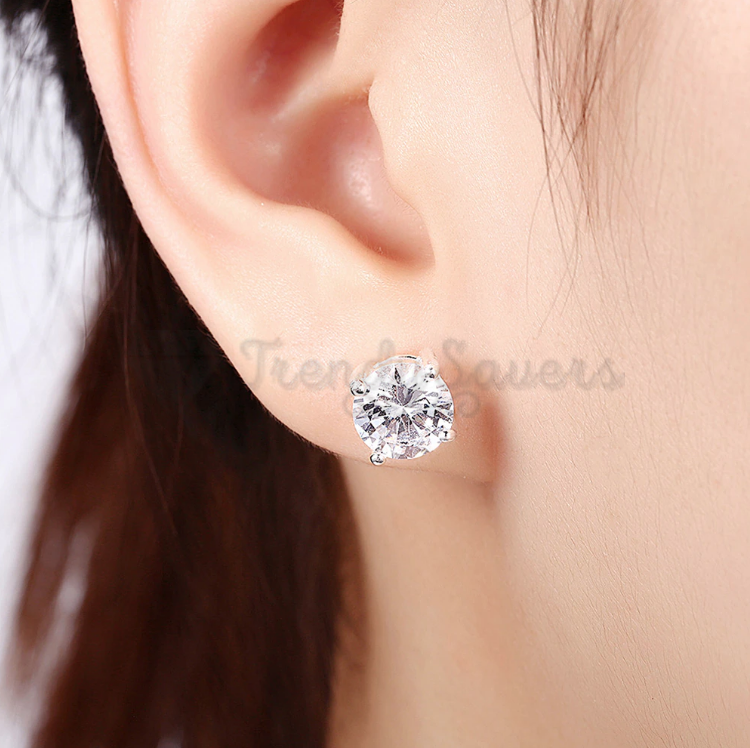 * Made of Sterling Silver Filled, these silver round-shaped cubic zirconia stud earrings with butterfly pushback closure are hypoallergenic, durable, lightweight, easy to maintain and use, and guaranteed anti-corrosive.