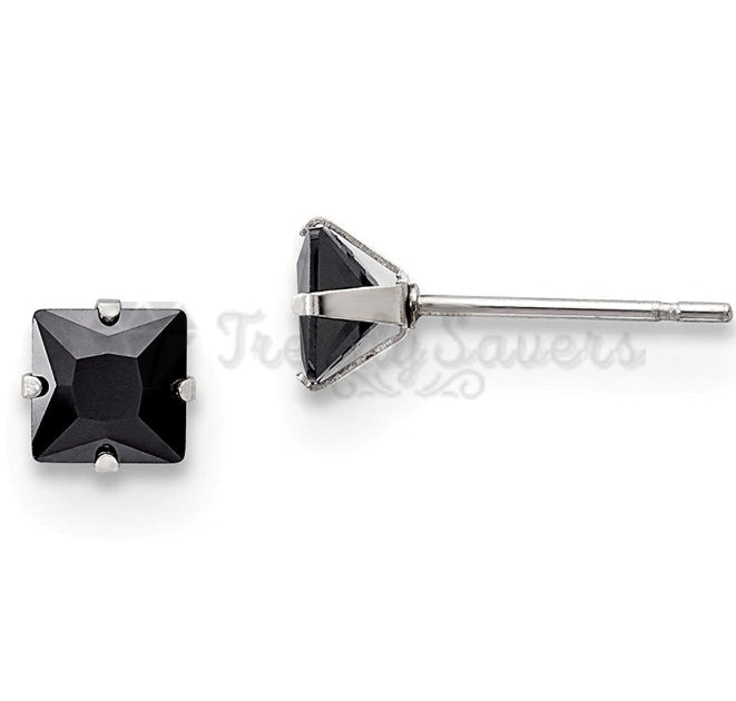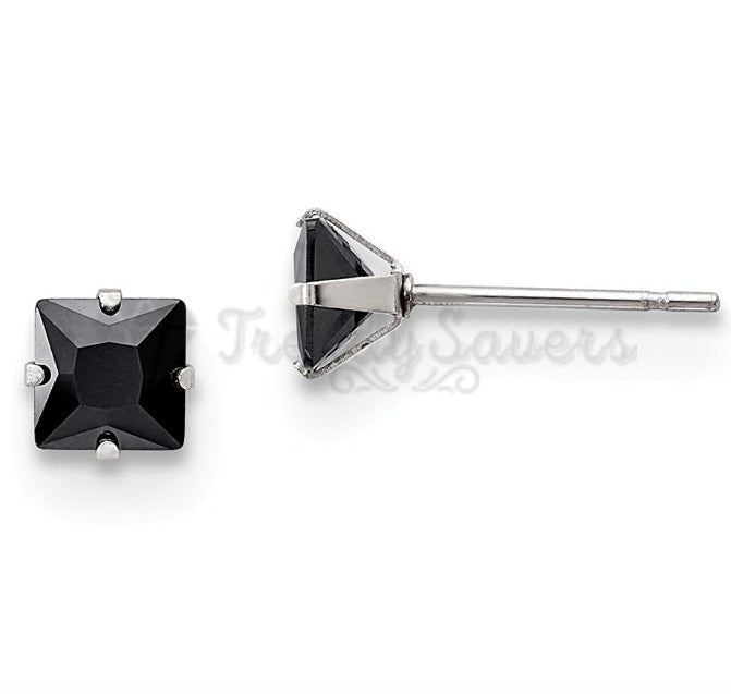 3MM Tiny Cubic Zirconia Black Punk Square Stud Real 925 Sterling Silver Earrings