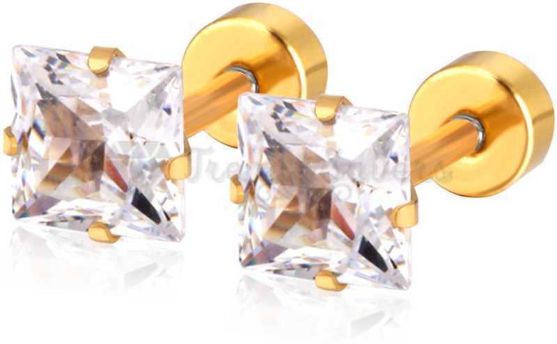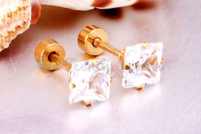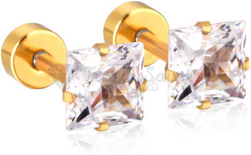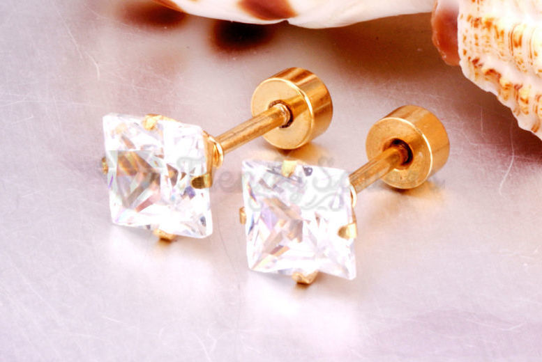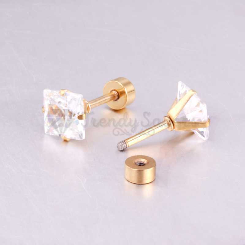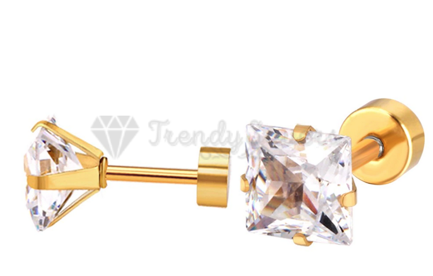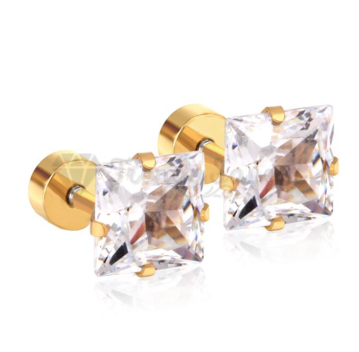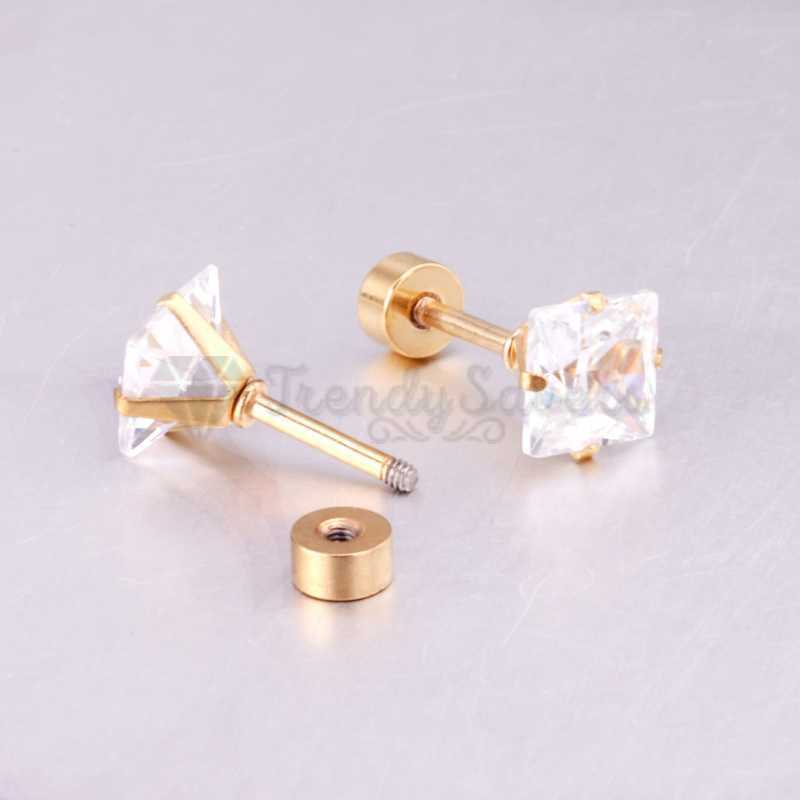 * Made of Surgical Stainless Steel, these square-shaped cubic zirconia stud earrings with screwback closure are hypoallergenic, durable, lightweight, easy to maintain and use, and guaranteed anti-corrosive.