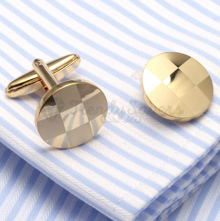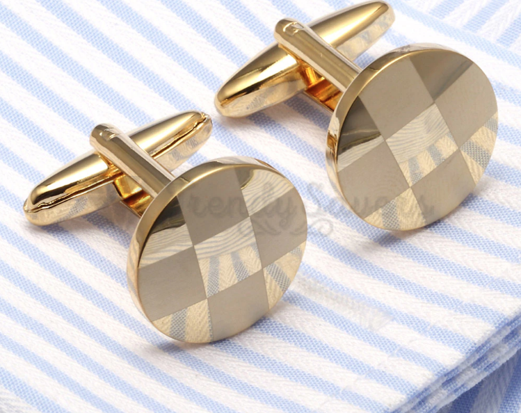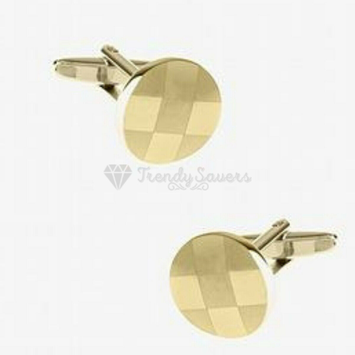 Gold Stainless Steel Small Round Checker Patterned Cuff Link Cufflink Mens Gift